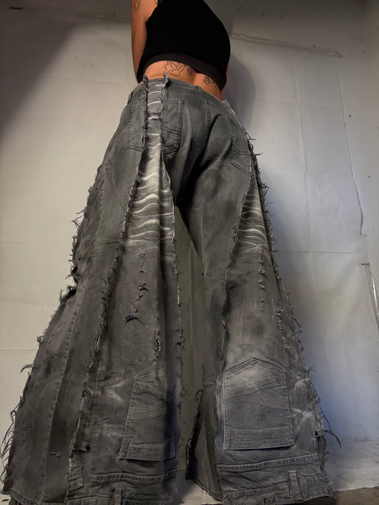 EXTRA BAGGY DISTRESSED DARK GREY SPG PANTS