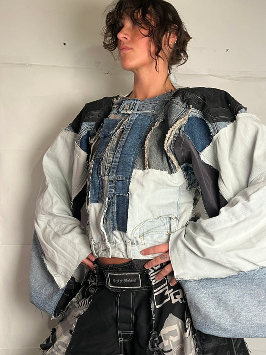 EXTRA OVERSIZE DENIM BIKER SPG JACKET