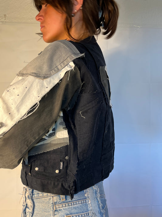 Sold outBIKER DENIM BLACK/WHITE SPG JACKET