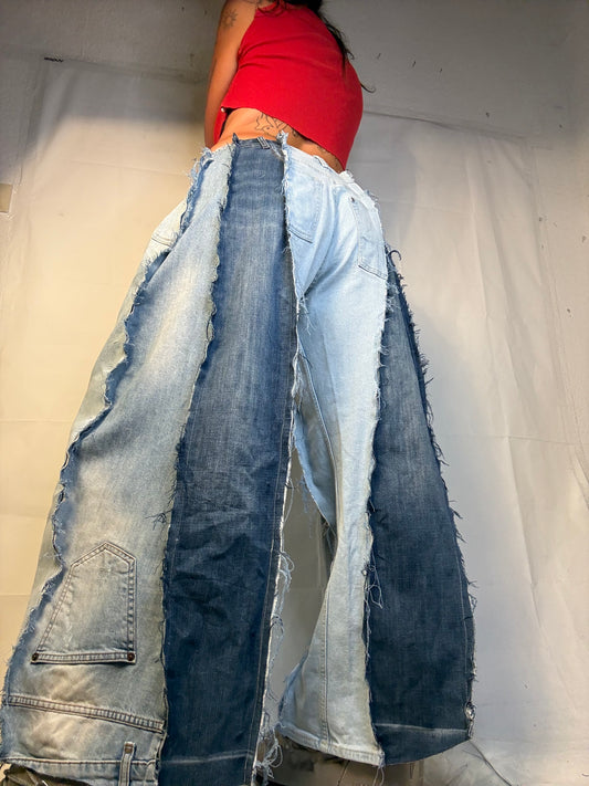 BAGGY DISTRESSED WASHED DENIM SPG PANTS