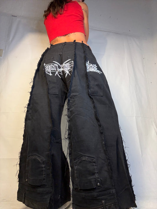 BAGGY ALL BLACK SKATER SPG PANTS W DETAIL ON BACK