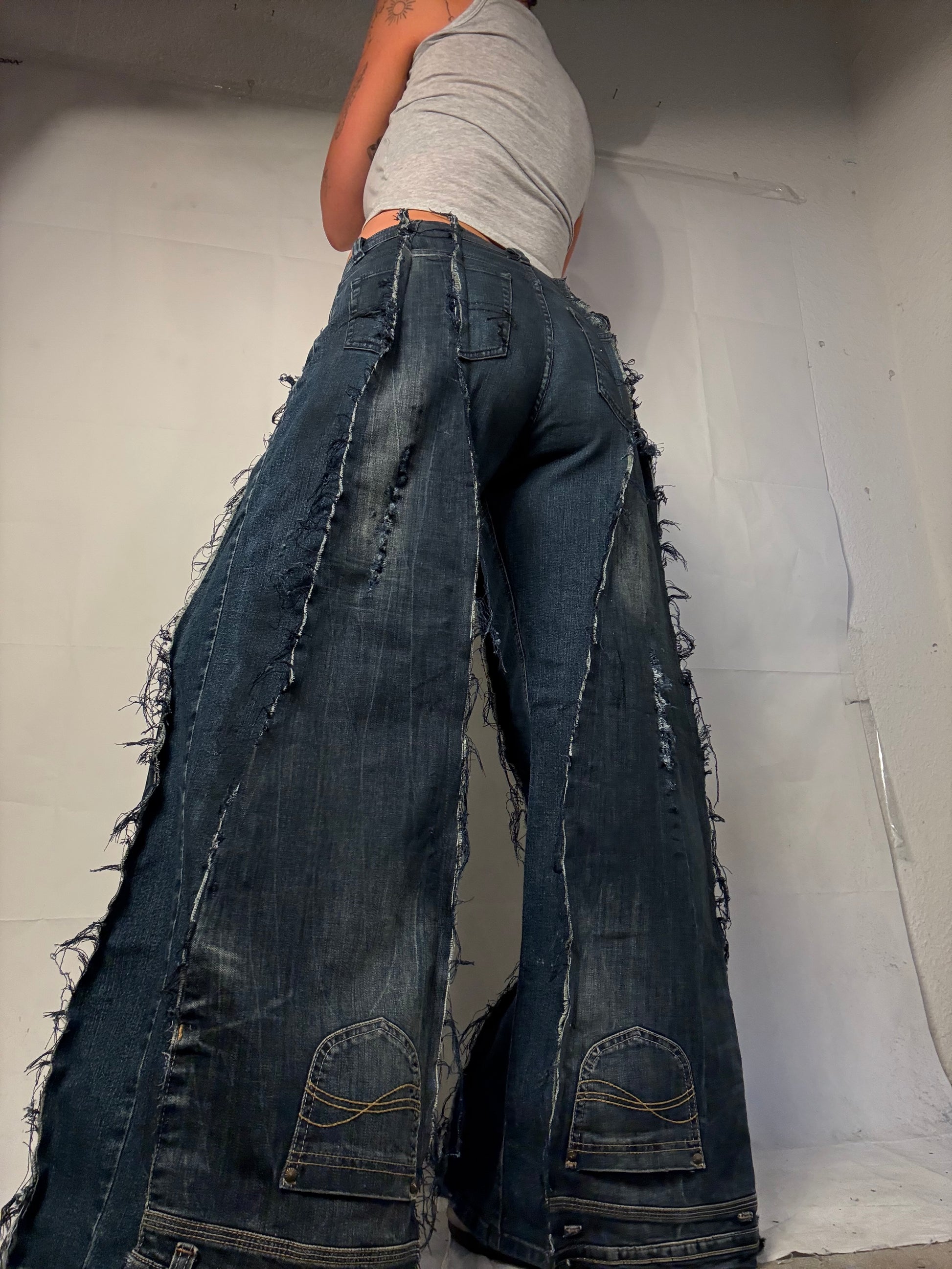 BAGGY DISTRESSED WASHED DENIM SPG PANTS