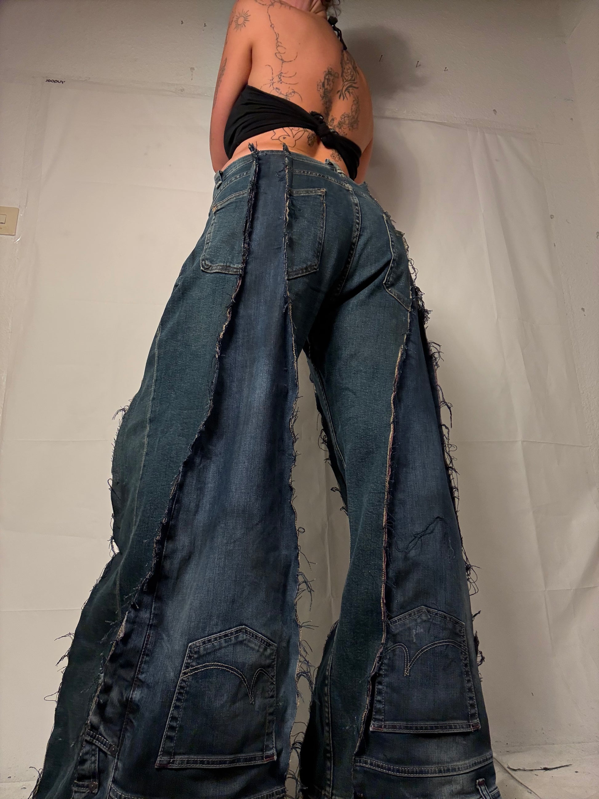 BAGGY STAINED WASHED DENIM SPG PANTS