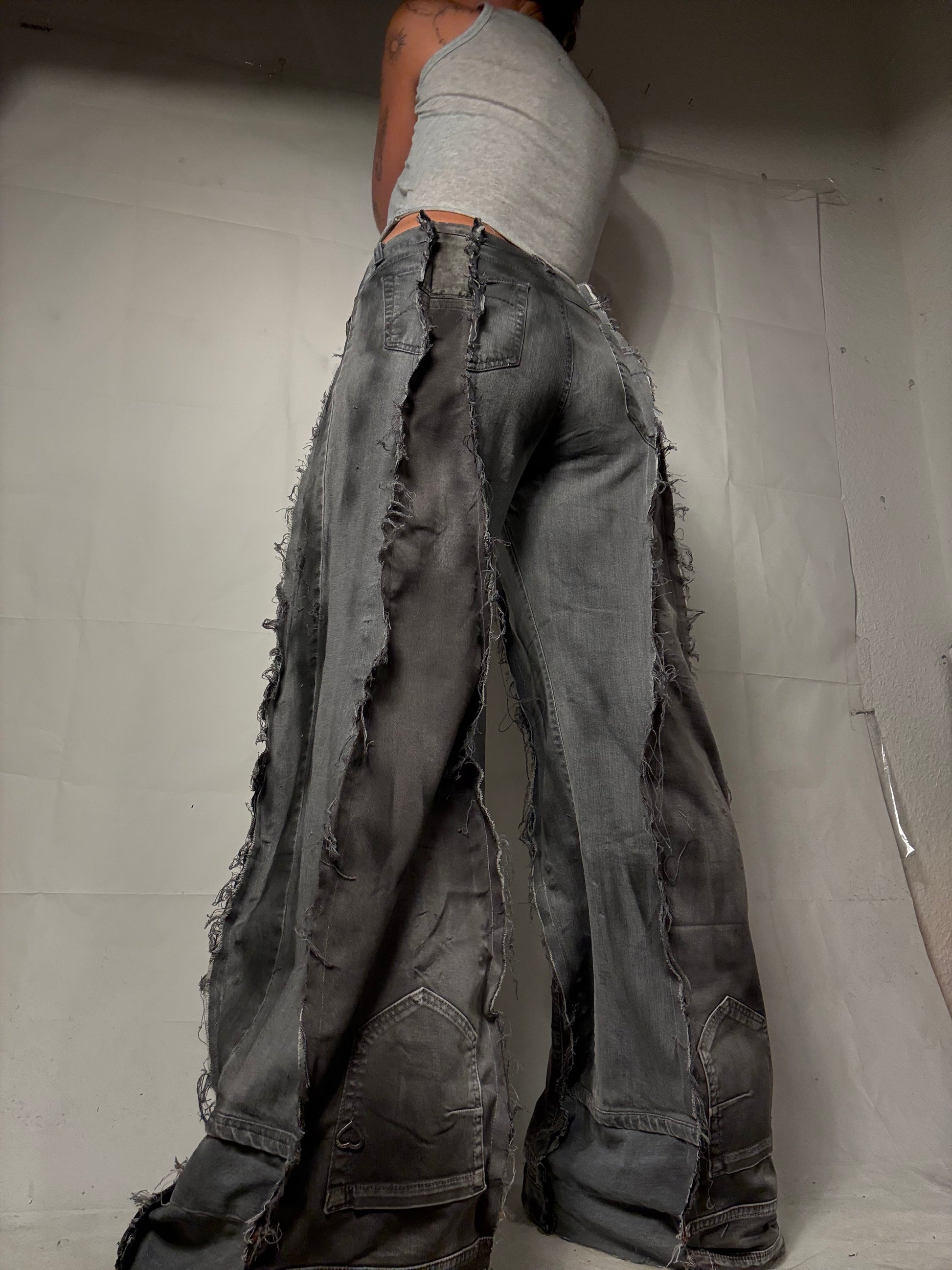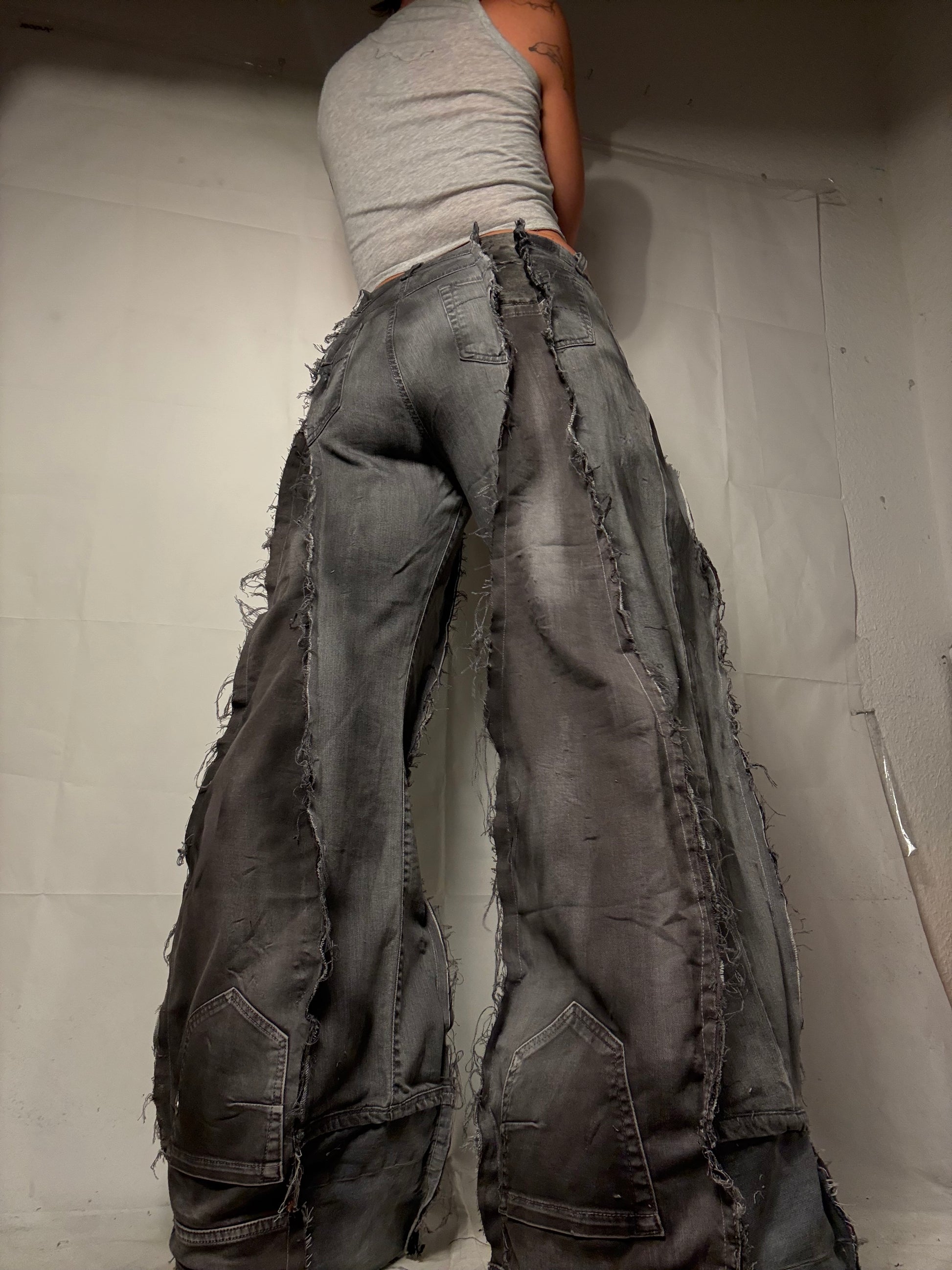EXTRA LONG DISTRESSED PATCHED GREY SPG PANTS