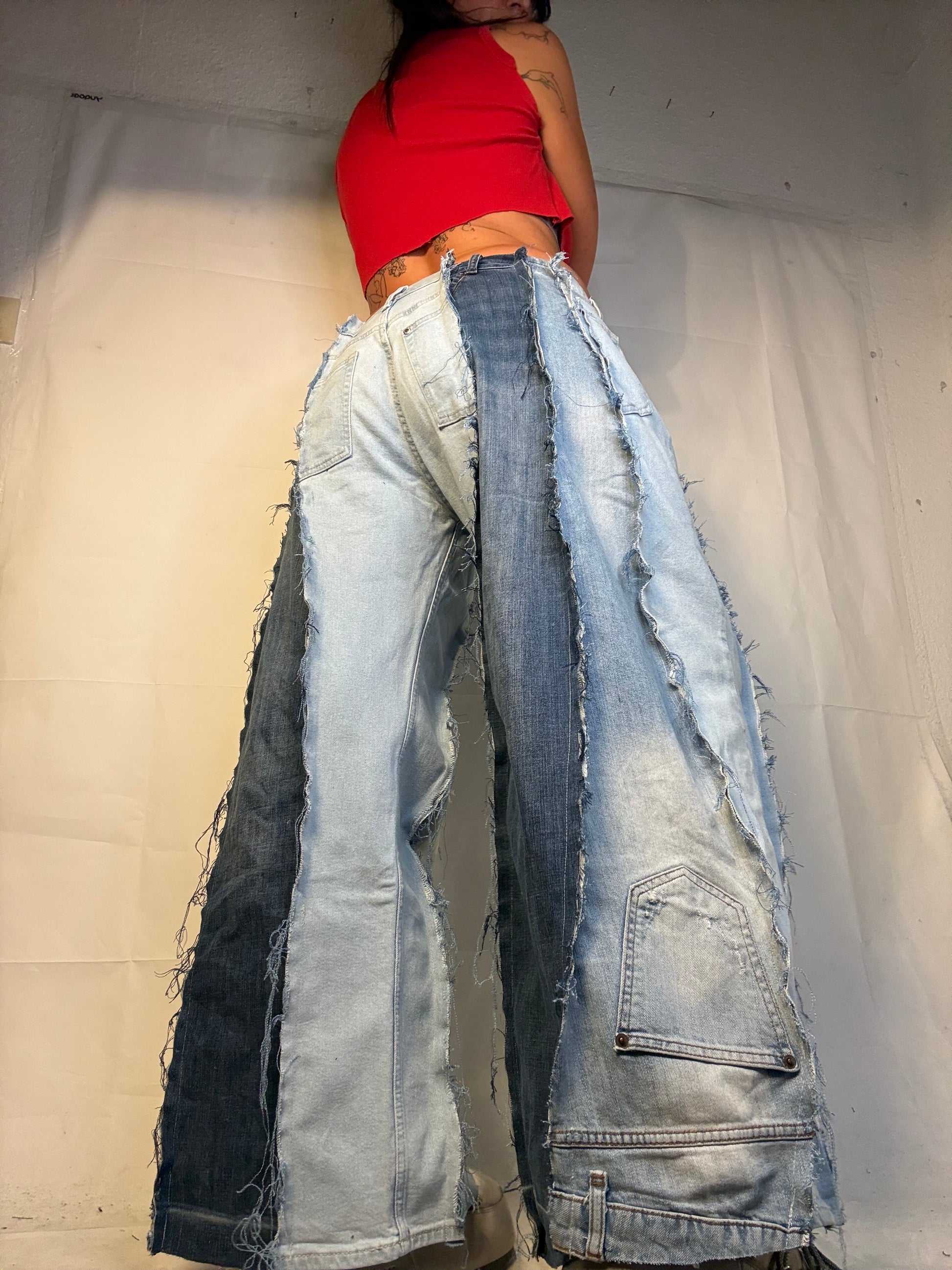 BAGGY RIPPED LIGHT DENIM SPG PANTS